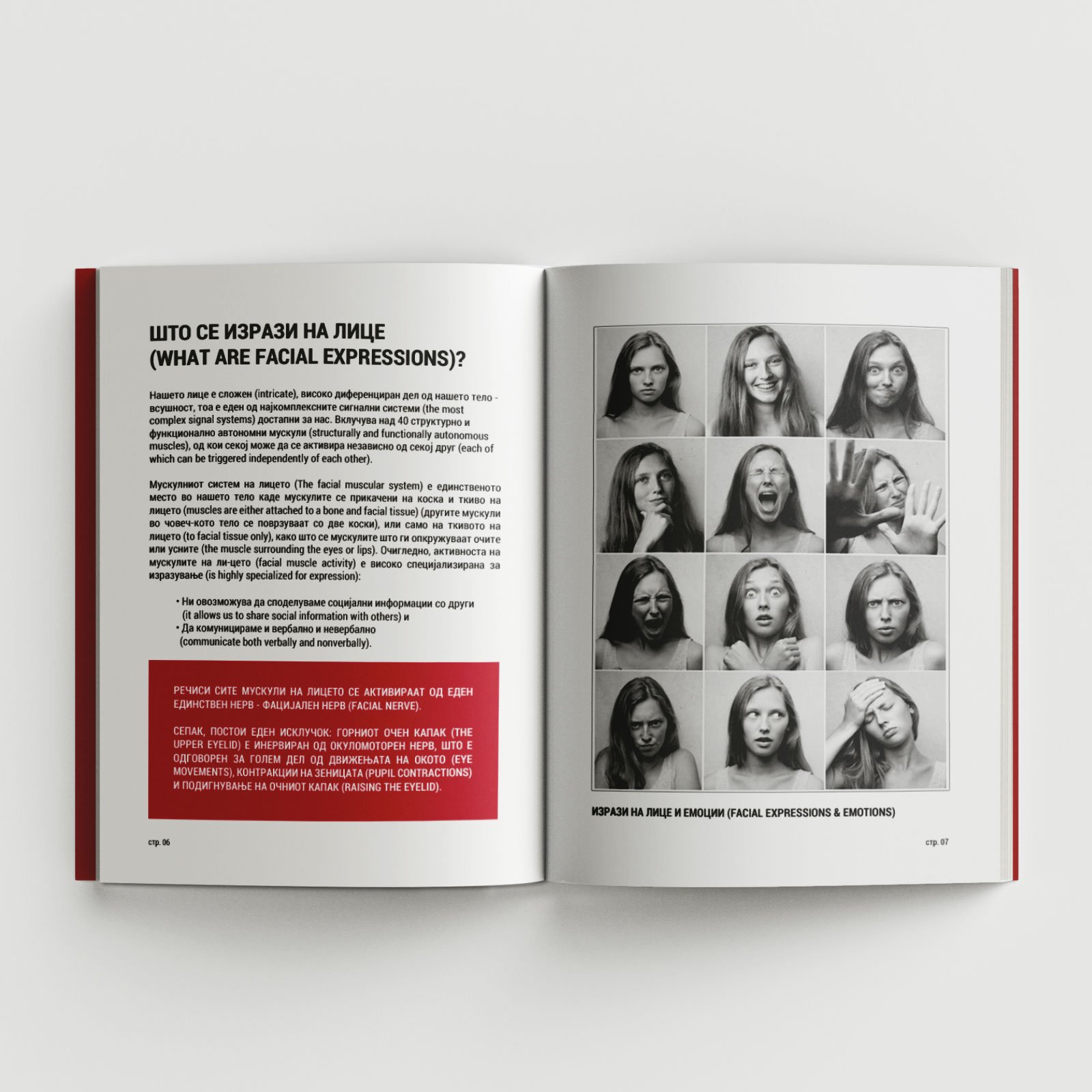 Емоциите се суштина на она што нè прави луѓе (the essence of what ma-kes us human). Тие влијаат на нашите дневни рутини (daily routines), нашите со-цијални интеракции (social interactions), нашето внимание (attention), перцепци-ја (perception) и меморија (memory). Еден од најсилните показатели за емо-циите е нашето лице (the strongest indicators for emotions is our face). Додека се смееме или плачеме, ги ставаме нашите емоции изложени, овозможувајќи им на другите да ѕирнат во нашите умови додека го “читаат“ нашето лице (allowing others to glimpse into our minds as they “read“ our face) засновано на промени во клучните карактеристики на лицето како што се очи, веѓи, капаци, ноздри и усни (eyes, brows, lids, nostrils, and lips).
